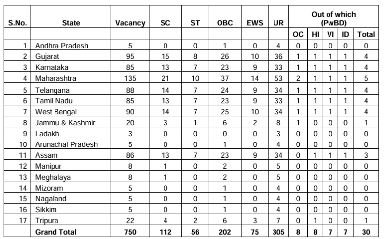 | Total Vacancies | 750 |